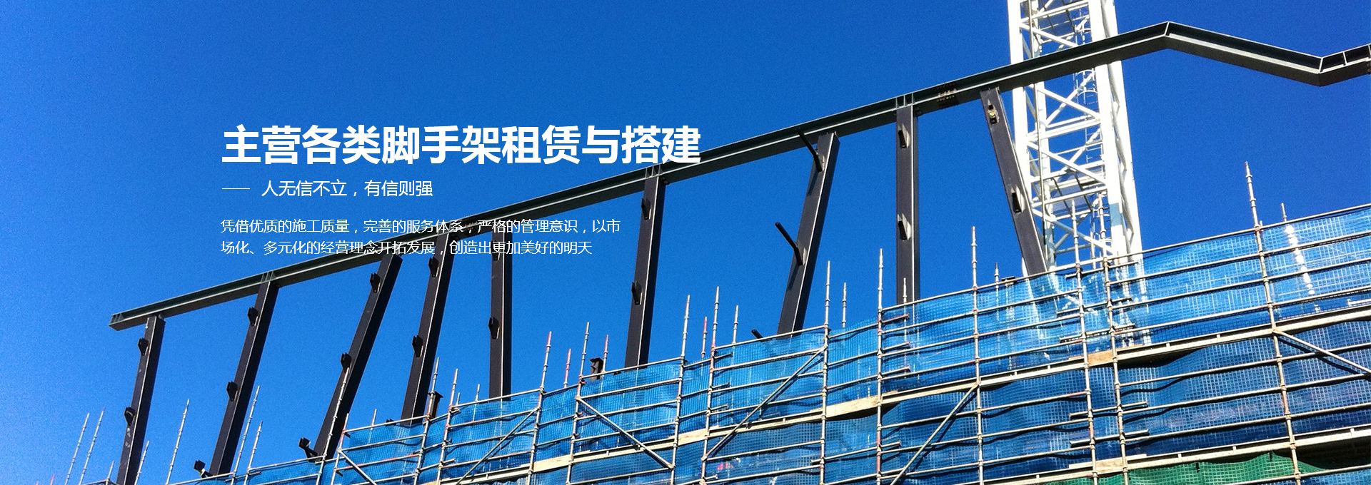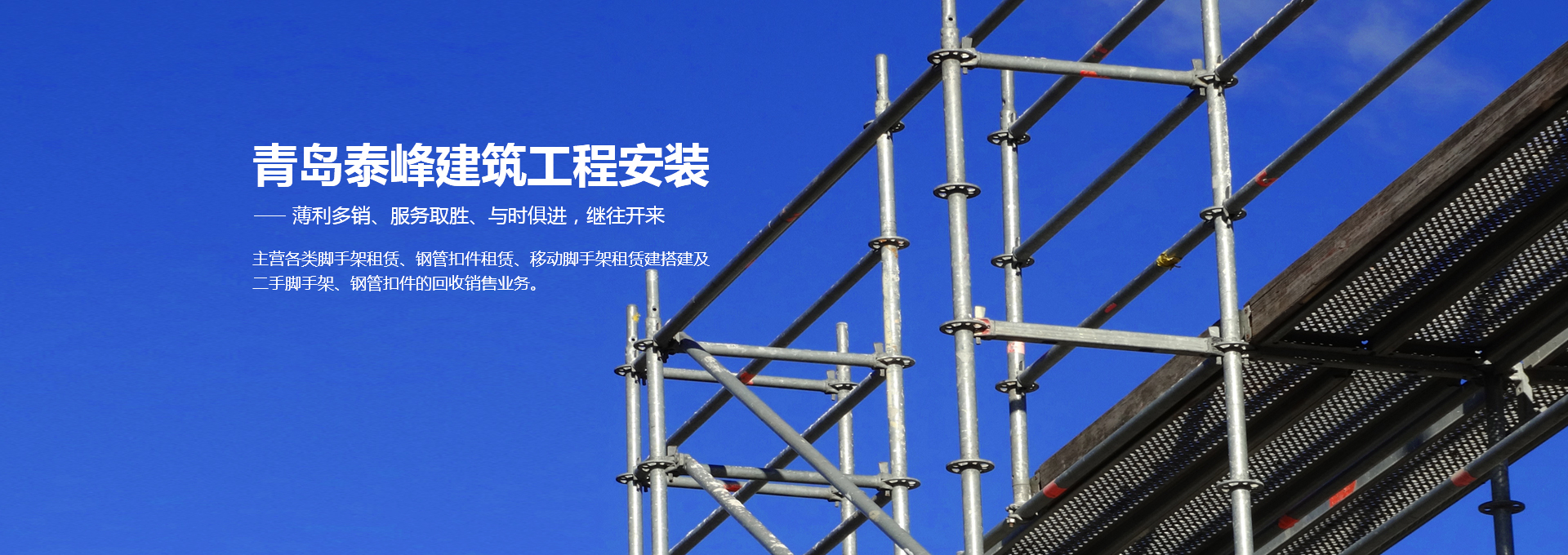 青島泰峰建筑工程安裝有限公司主營各類腳手架租賃、鋼管扣件租賃、移動腳手架租賃建搭建及二手腳手架、鋼管扣件的回收銷售業(yè)務(wù)。公司實力雄厚,擁有鋼管約3000噸、扣件70萬只、鋼笆7萬多片塔吊、人貨電梯多臺;總資產(chǎn)達(dá)到1000多萬元。是一家具有腳手架搭建、水電安裝專業(yè)承包施工資質(zhì)的企業(yè),并成為青島市五金協(xié)會的會員單位。且多次參與高層建筑、建筑裝修、玻璃幕墻、橋梁、隧道、地鐵、電廠維修施工、造船等行業(yè)的施工,并獲得施工單位的一致好評。 人無信不立,有信則強(qiáng)公司以“薄利多銷、服務(wù)取勝”為經(jīng)營宗旨...